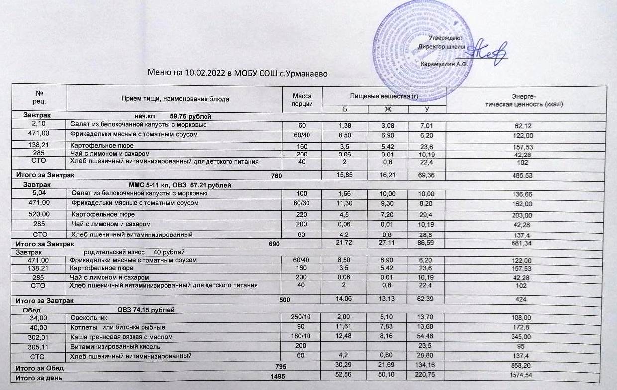 Меню на 21.01.2026