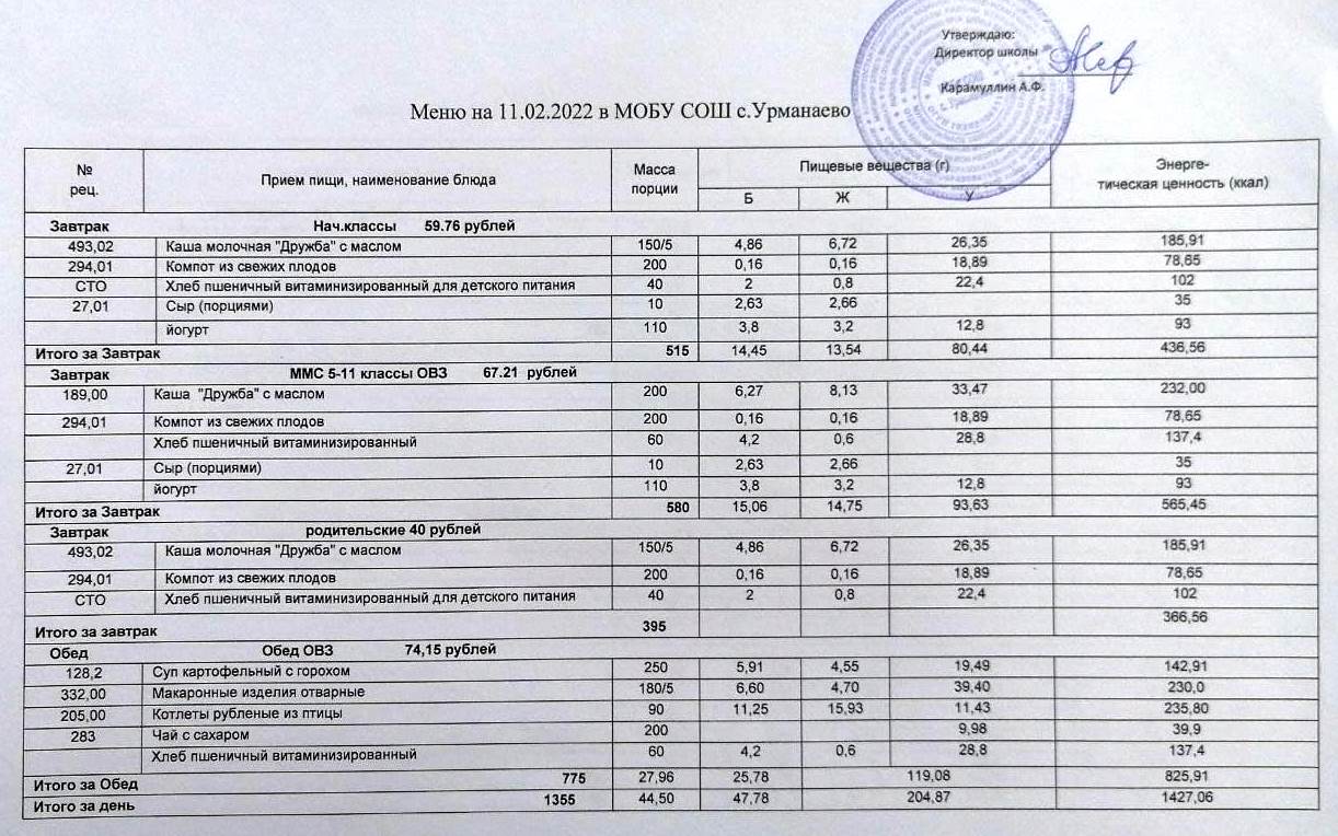Меню на 13.11.2025