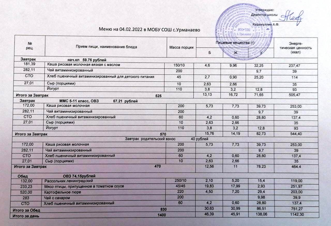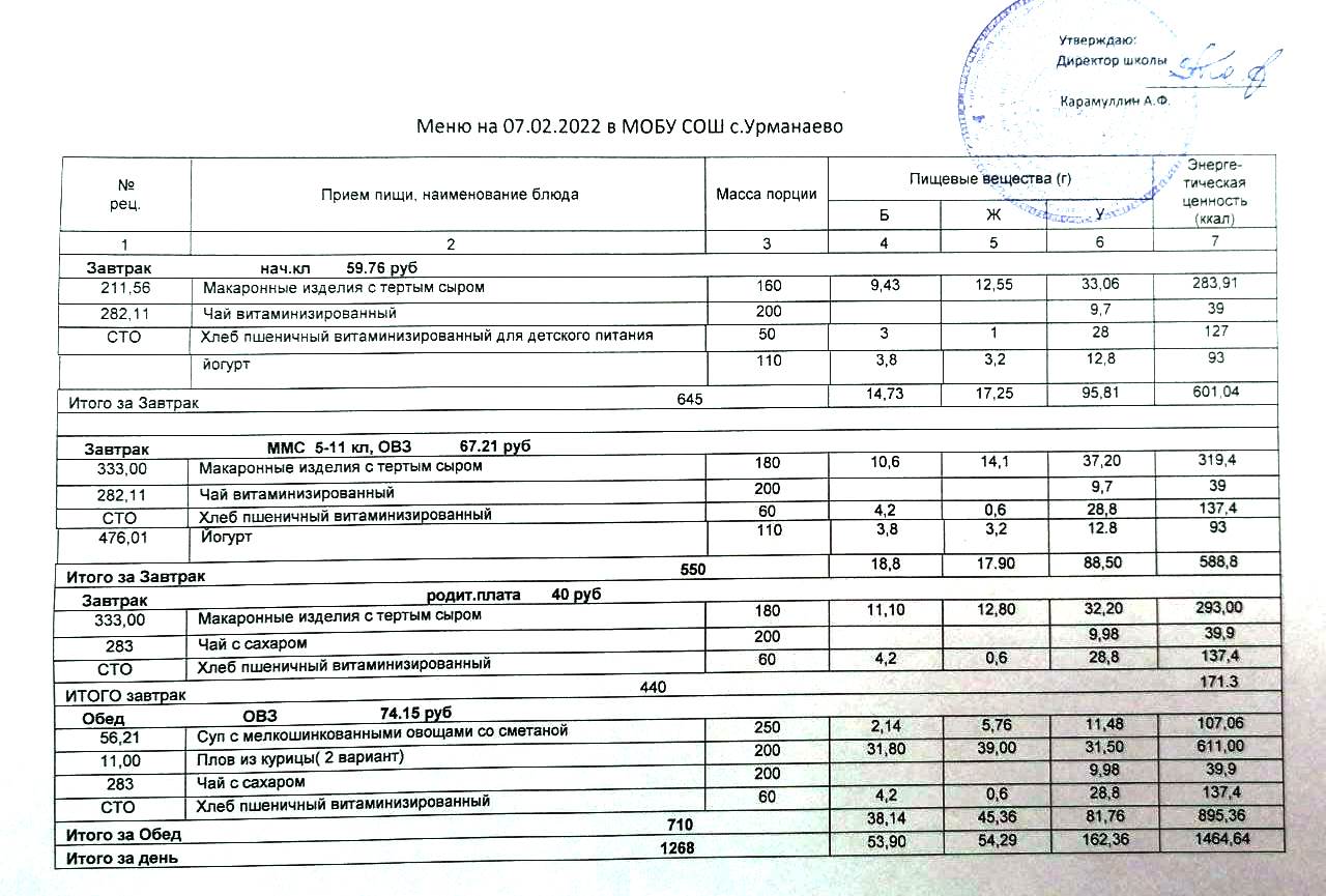 Меню на 28.01.2026
