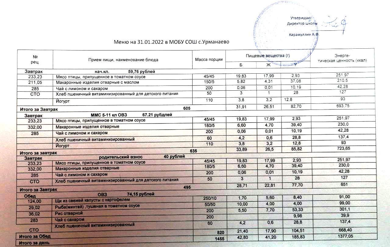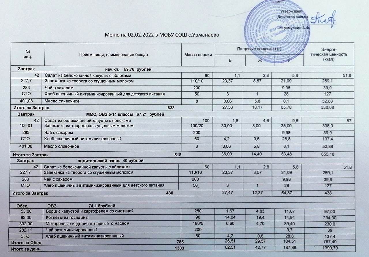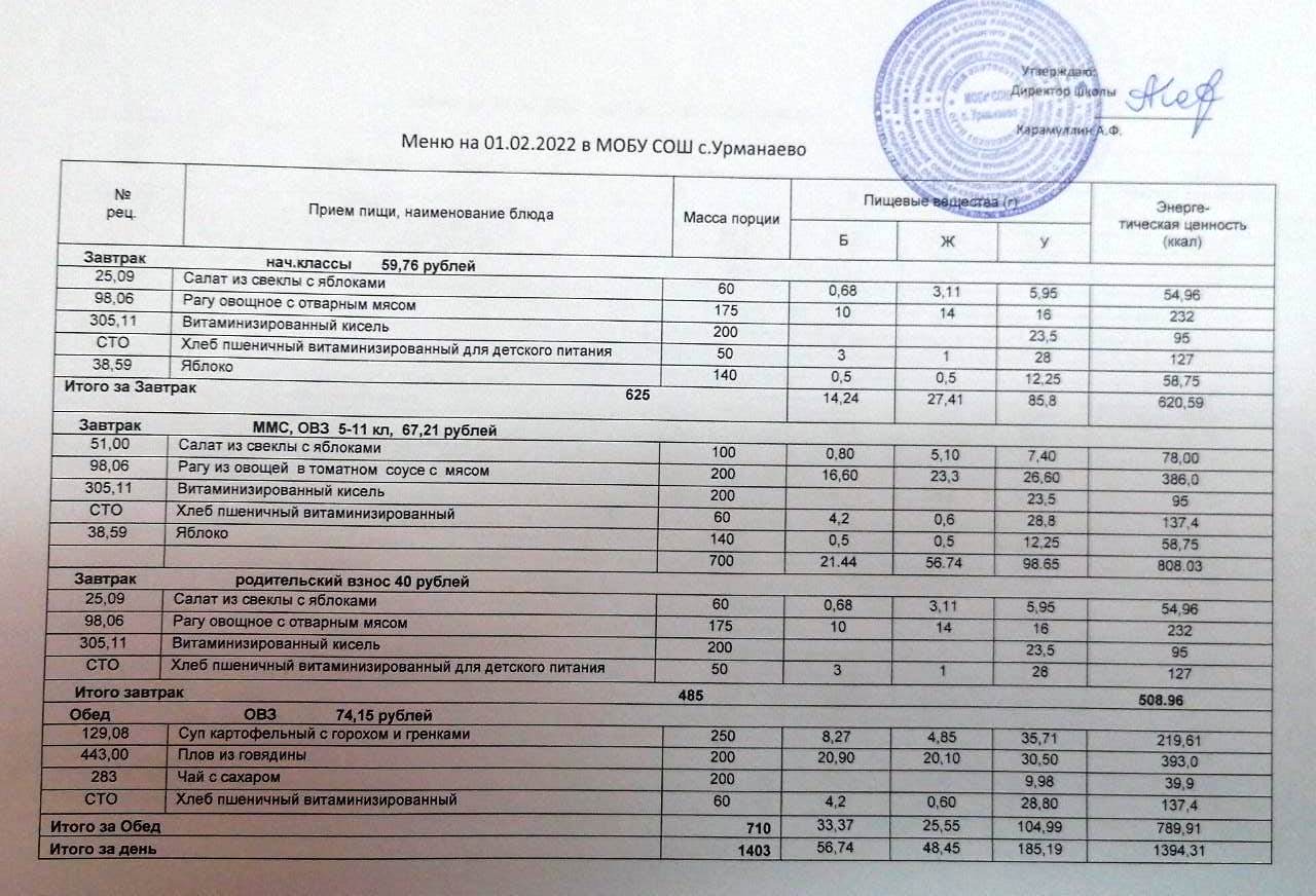 (меню на 01 февпаль 2022)