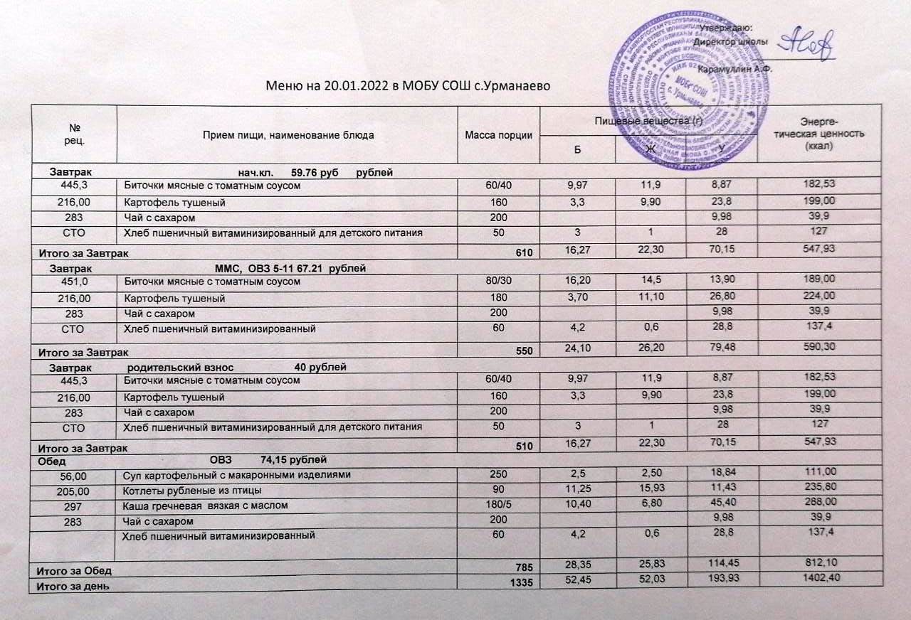 (меню на 20 январь 2022)
