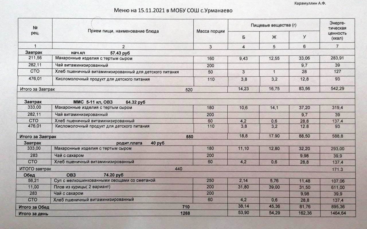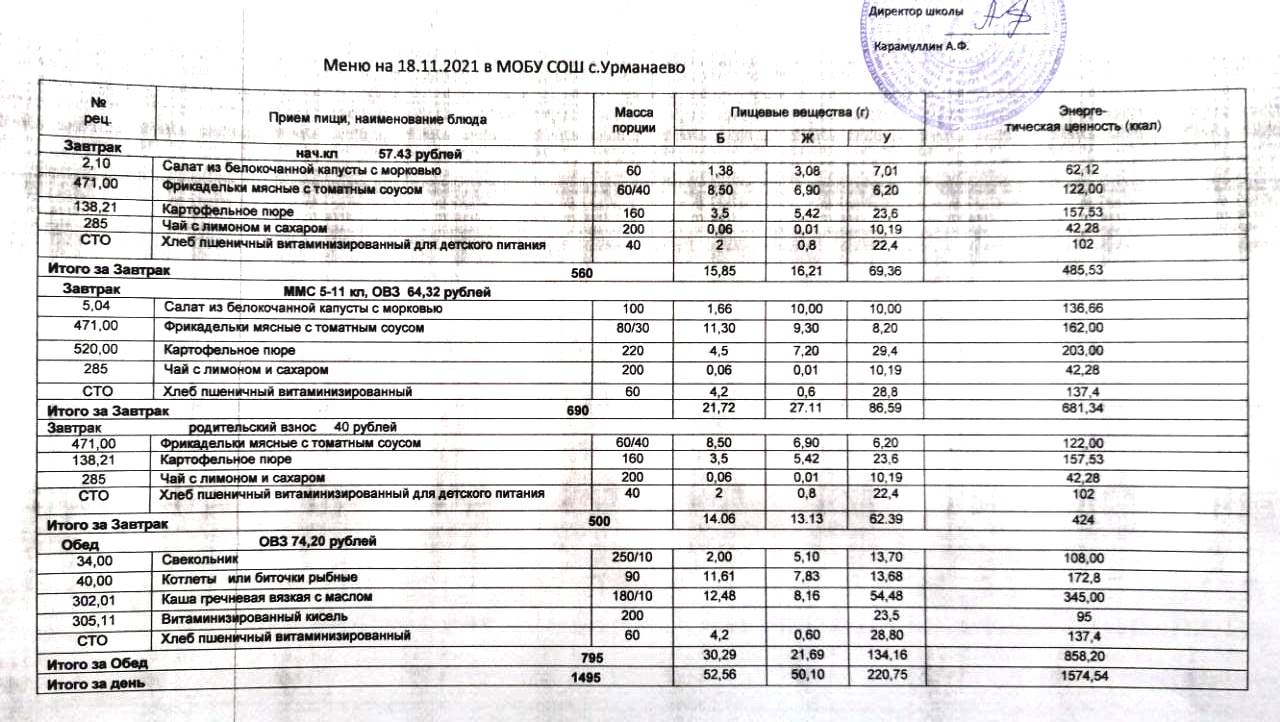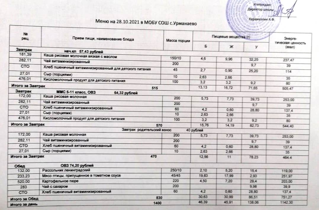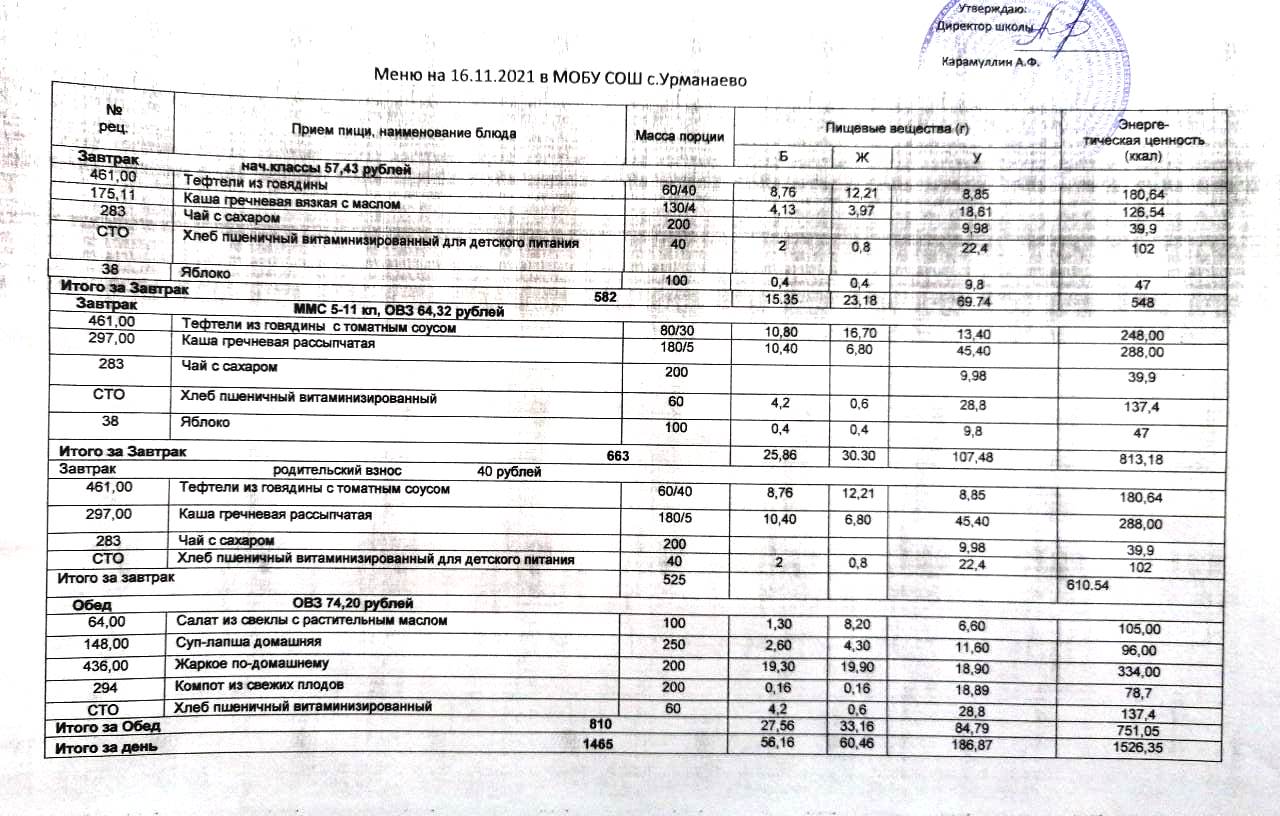Меню на 21.11.2025             Завтрак род. взнос     Завтрак (ММС,ОВЗ)          Завтрак нач. кл.        Обед ОВЗ