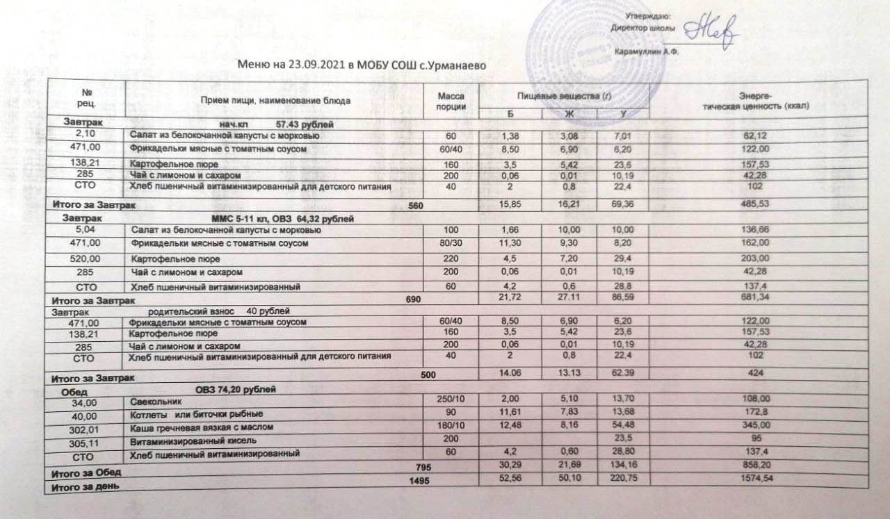(меню на 23 сентябрь 2021)