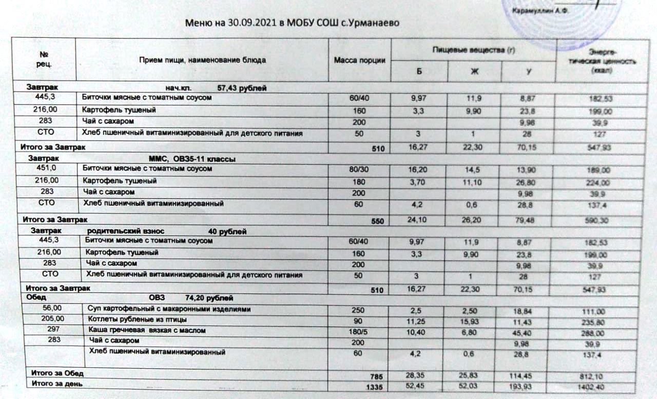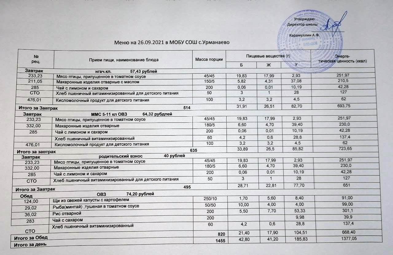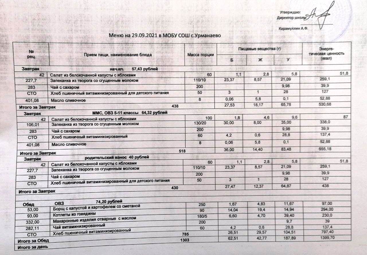 (меню на 29 сентябрь 2021)