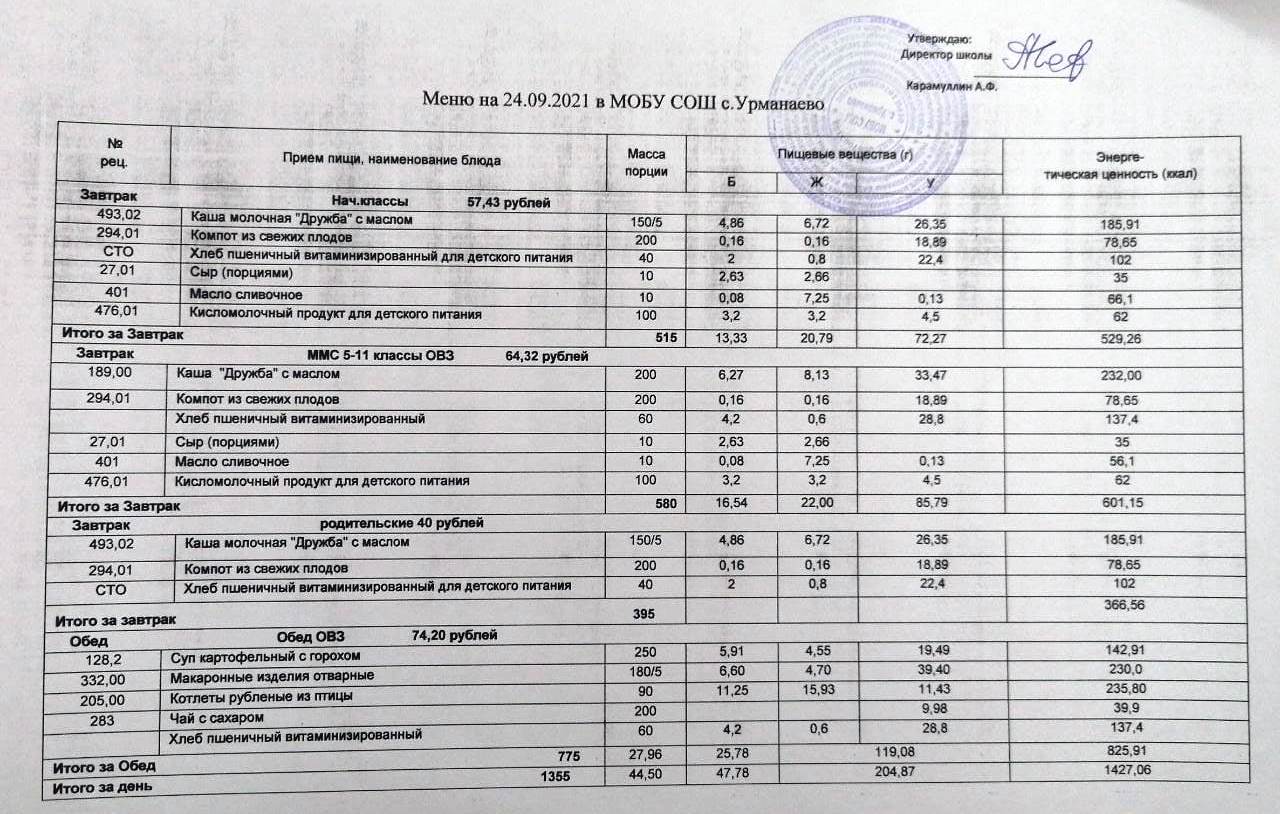 (меню на 24 сентябрь 2021)