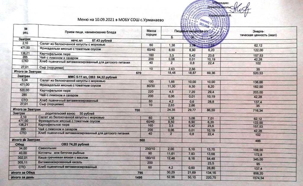(меню на 10 сентябрь 2021)