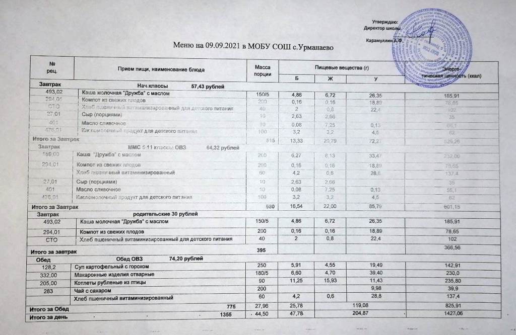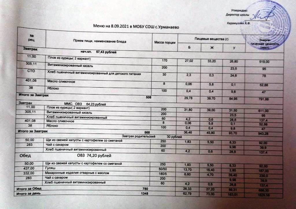 (Меню на 08.09.2021)