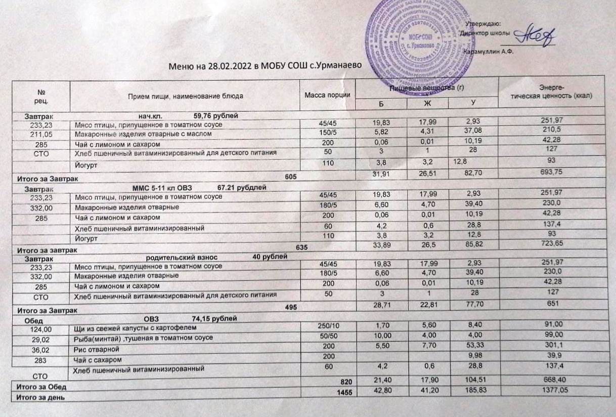 Меню на 28.01.2026