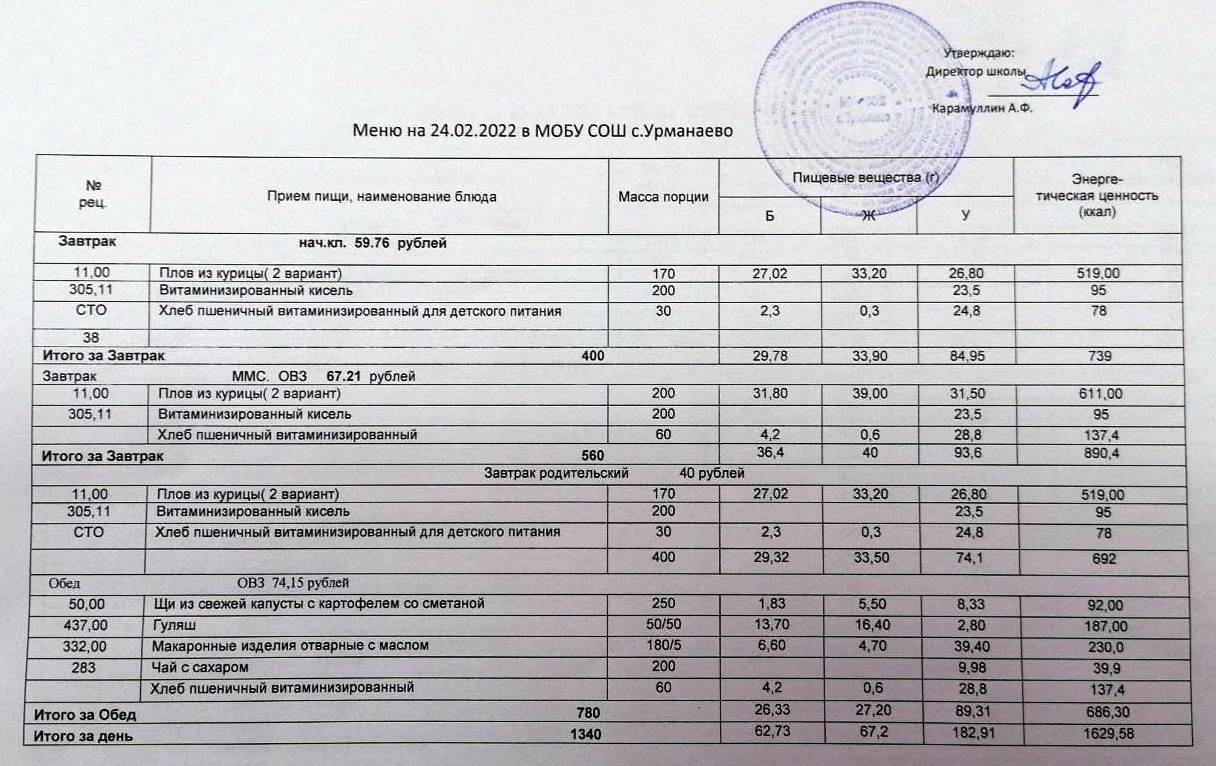 Меню на 24.11.2025