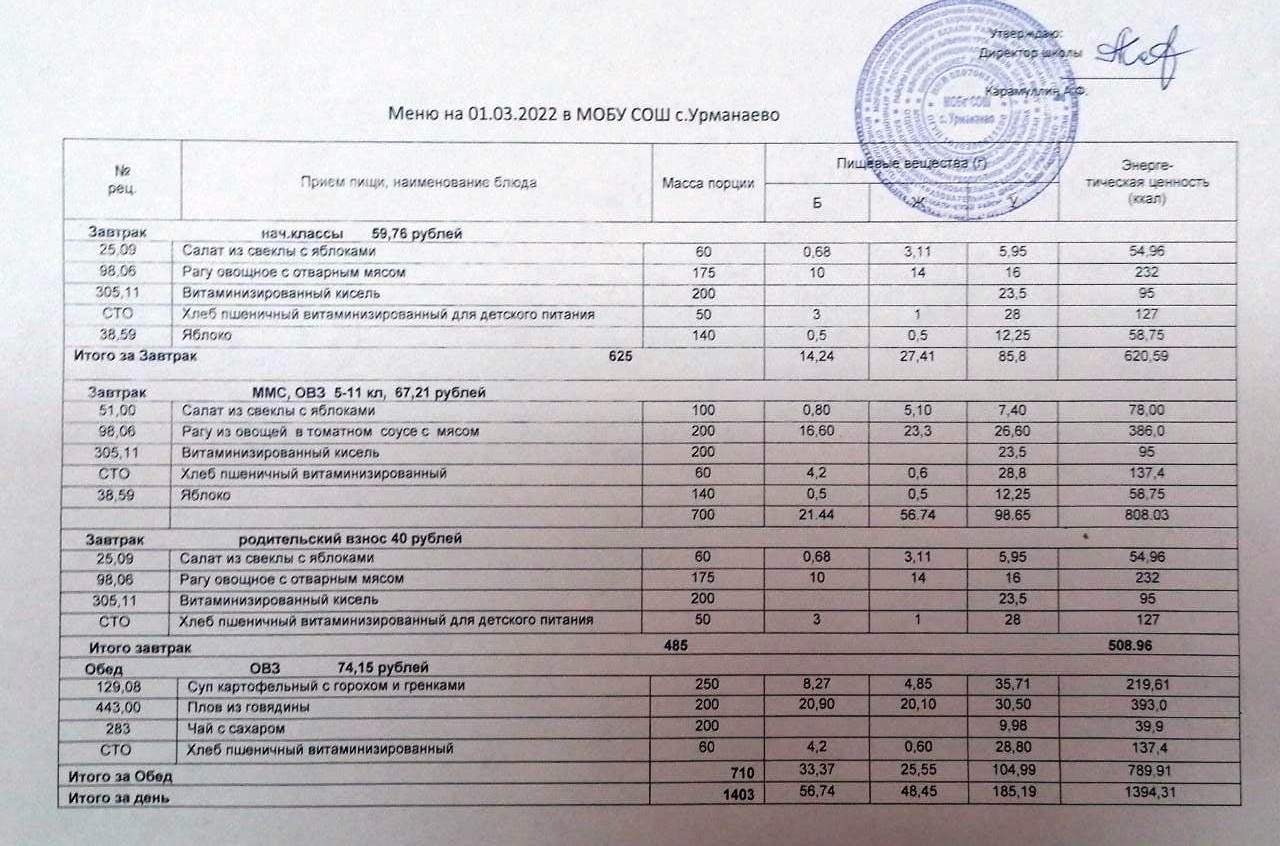 Меню на 01.12.2025