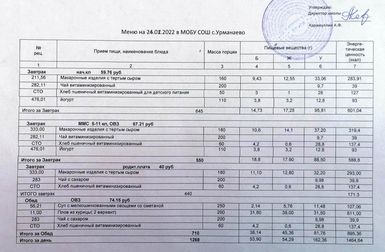Меню на 21.01.2026